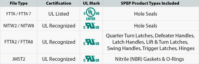 Customers can choose to purchase applicable SPEP UL Listed hardware for direct use & installation into complete devices or panels without any testing, or purchase SPEP UL Recognized parts if intending to use, resell, or qualify as a sub-component for a UL Listed device or panel. UL Rated parts provide peace of mind that they will function as intended and save you from added costs of getting them UL Certified on your own.